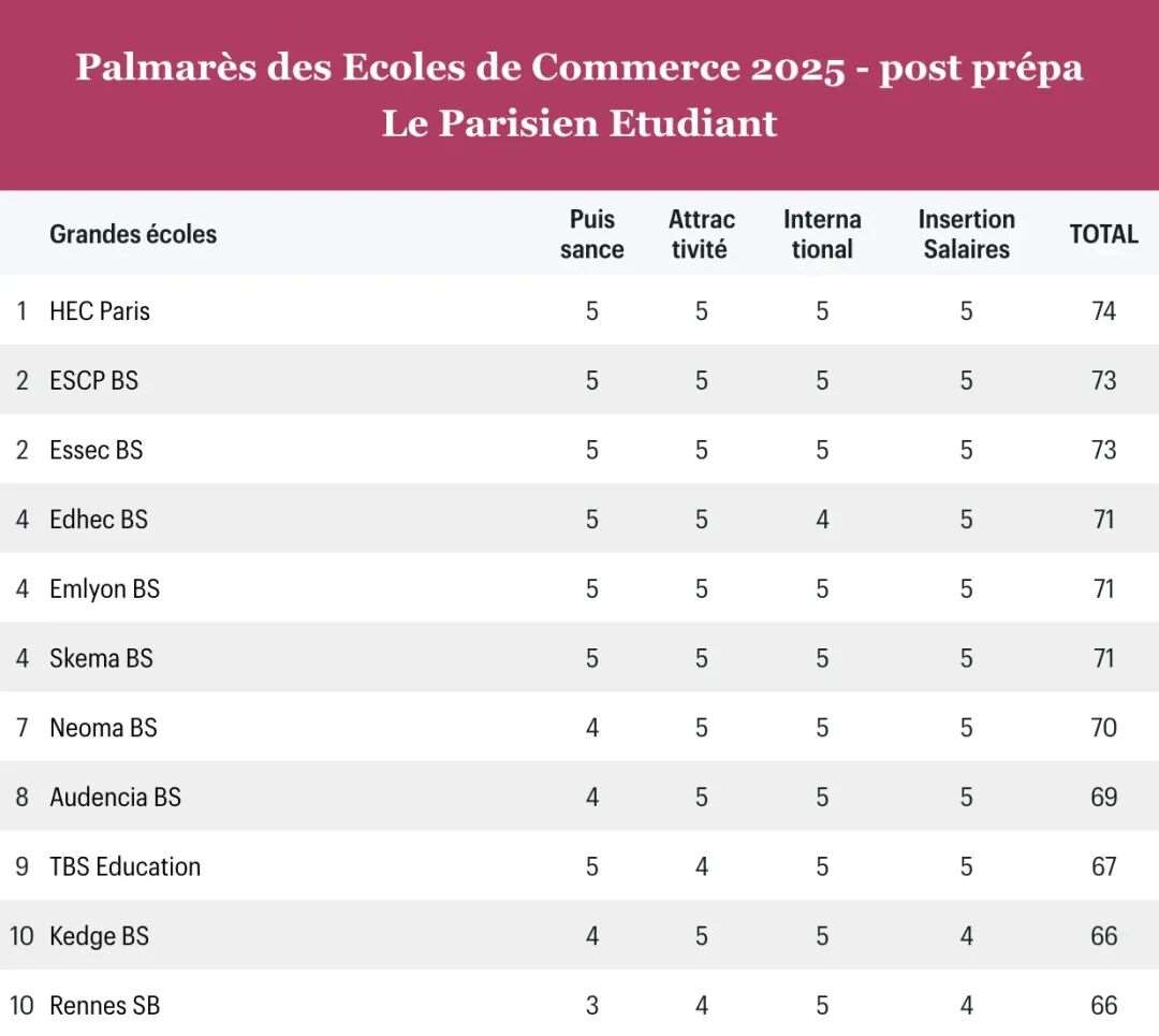关于如何选校,同学们可以看看2025最新法国商学院的综合排名和专业排名。